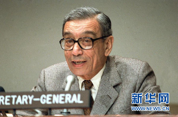 2月16日,联合国安理会宣布联合国前秘书长加利去世。这是联合国前秘书长加利1992年的资料照片/新华社发