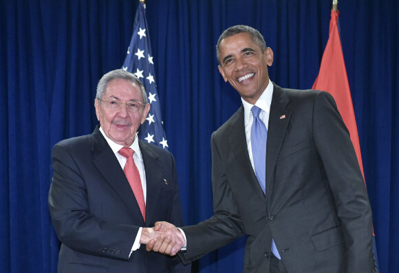 图:美国总统奥巴马(右)去年9月29日在纽约与古巴领导人劳尔会面/资料图片