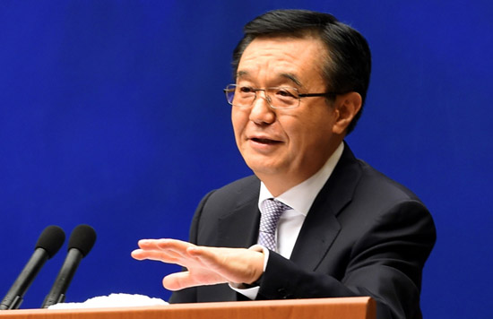 图:23日,中国商务部部长高虎城出席新闻发布会 中新社