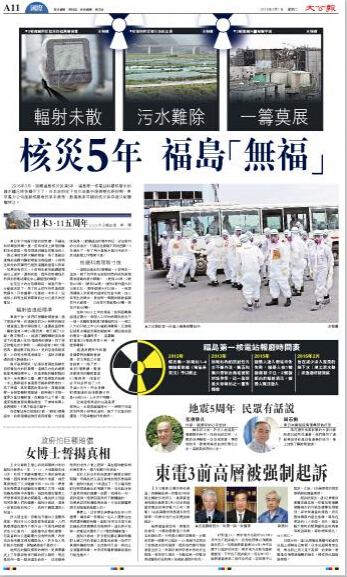大公网3月1日讯 (记者李理)2016年3月,距离福岛核灾快满5年,福岛第一核电站贮藏核废水的储水罐已经快摆不下了,日本政府定下的灾后集中复兴期也将到期,东京电力公司面对核废堆仍束手无策,数万无家可归的核灾幸存者只能嘤嘤哭泣。