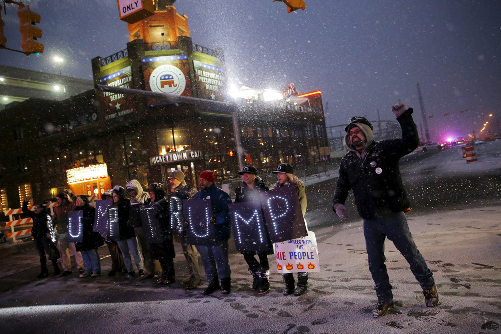 图:民众3日在辩论会场外举行反特朗普示威\路透社