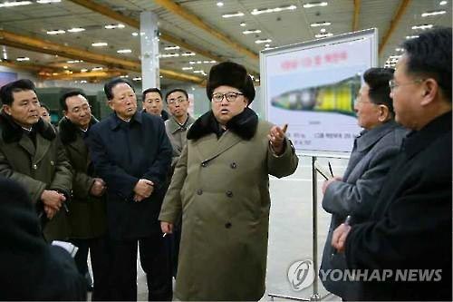 资料图片:据朝鲜党报《劳动新闻》9日报道,金正恩日前会见核武器研发领域的科学家和技术人员时表示,朝鲜成功实现核弹头小型化、标准化和系列化,便于弹道火箭携带。(韩联社)