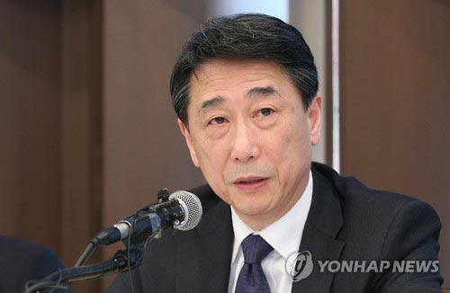 3月14日,韩国常驻联合国代表吴俊大使出席韩国记者俱乐部举办的活动并发言(韩联社)