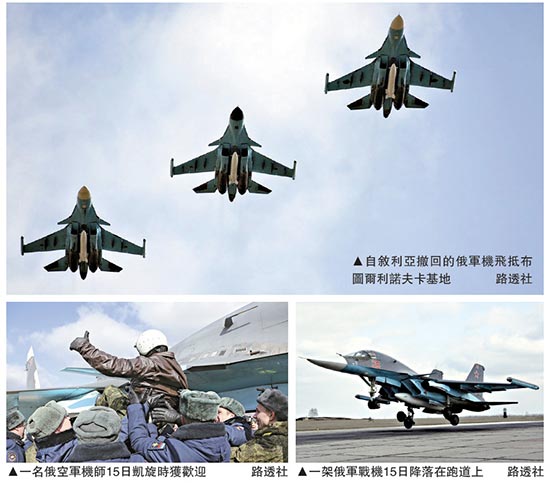 普京这招的确是“奇牌”。按常理,叙利亚和谈经数次推迟和暂停后,终在十四日得已重启,俄作为谈判重要一方,本该在此关键节点增兵遣将,为巴沙尔撑足腰,争取最大利益。但普京却反其道而行之,不仅未增加军事力量,反而却在同一天宣布撤军,并即刻付诸行动。