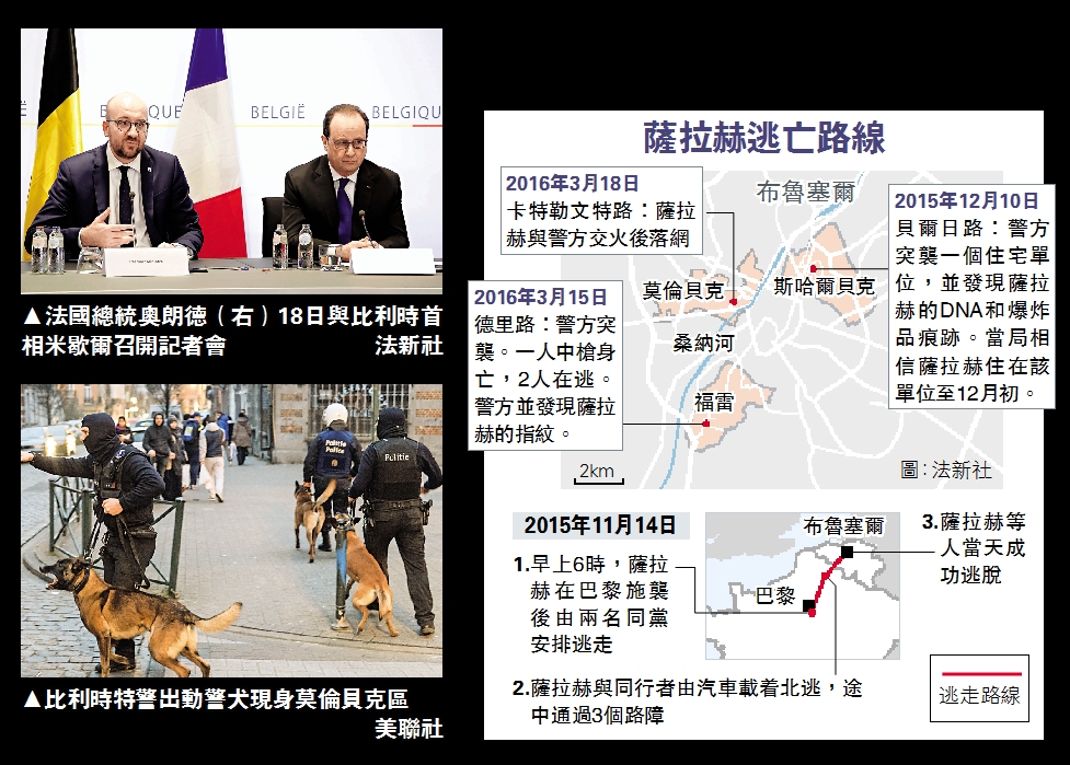 26岁的萨拉赫在巴黎恐袭数小时后,成功避开边境检查,驾车由巴黎返回家乡布鲁塞尔。据称,他之后一直在布城内被誉为“欧洲恐怖分子温床”的莫伦贝克区四处藏匿,多次逃过法、比警方的检查和搜捕。