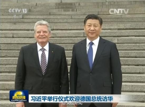 21日下午,习近平举行仪式欢迎德国总统访华 图:央视新闻
