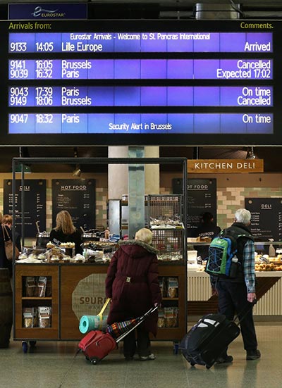 图:伦敦圣潘克拉斯车站内欧洲之星列车的信息牌\法新社