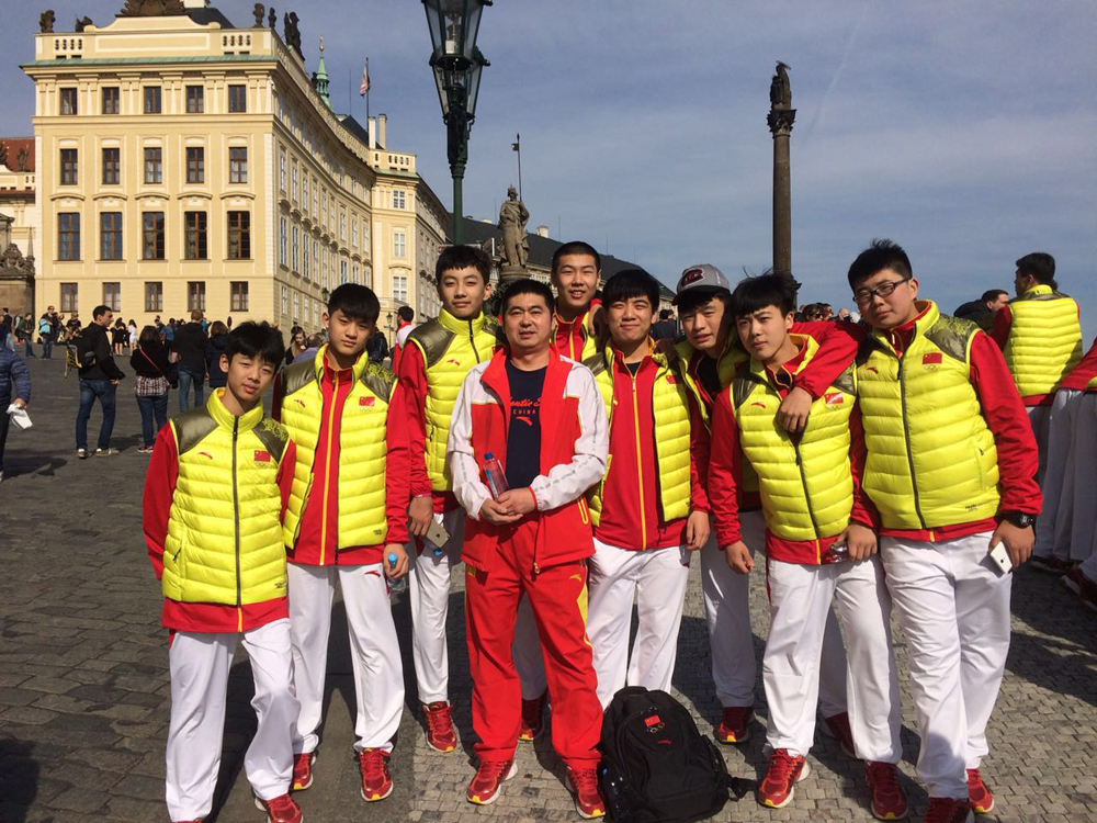 目前在捷克受训的中国青少年冰球运动队队员和教练 耿华教练提供