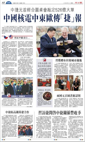 另据新华社报道,习近平在出席中捷经贸合作圆桌会时发表题为《传承友谊,继往开来,开启中捷经贸合作新时代》的重要讲话,强调中捷双方要增进协调配合,加强优势对接,创新合作模式,发挥比较优势,推动中捷经贸合作发展。