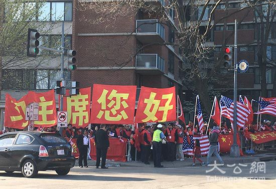 大公网3月31日讯(驻纽约记者黄晓敏)国家主席习近平于美东时间30日晚七时许抵达美国首都华盛顿,出席将于31日至4月1日召开的第四届核安全峰会。数千华人华侨在习主席下榻的酒店外夹道欢迎。