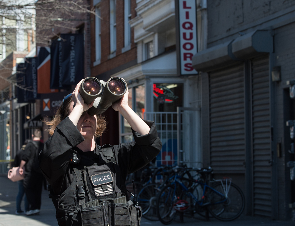 图:一名特工处特工30日在华盛顿检查安全威胁 法新社