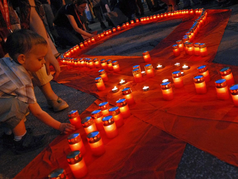 图:一个小男孩在塞尔维亚爱滋纪念活动上点燃蜡烛 法新社
