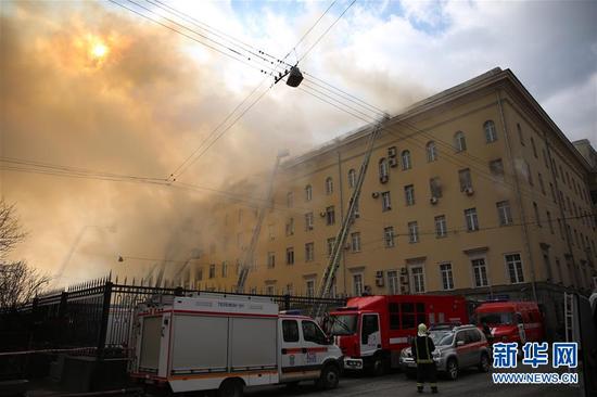 新华社莫斯科4月3日电(记者温馨 白雪琪)位于俄罗斯首都莫斯科市中心的俄国防部大楼3日上午发生火灾,过火面积达3500平方米。目前火势正逐步得到控制,尚未有人员在火灾中伤亡的报告。