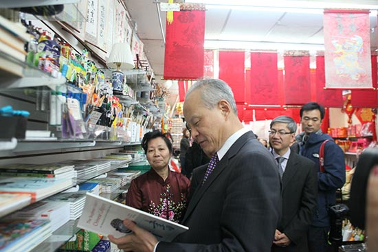 图:中国驻美大使崔天凯日前走访美国费城华埠\中新社
