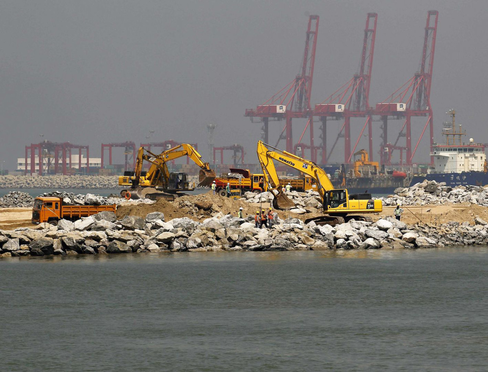 图:2015年2月,由中企投资建设的科伦坡港口城施工现场\资料图片
