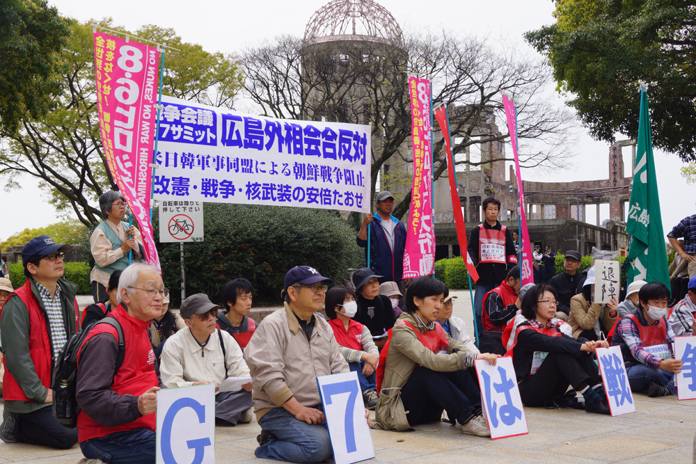 图:日本广岛民众10日集会,抗议G7外长会议及安倍政权\新华社