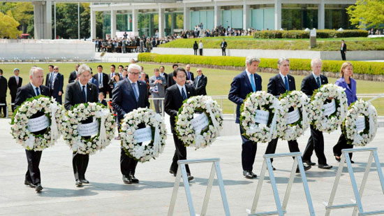 G7外长11日到访广岛和平纪念公园,向死难者献花圈 路透社