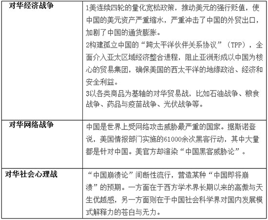 美对华三种“战争形态”/孙志制表(图表来源《美国的焦虑:一位智库对美国的调研手记》,人民出版社)