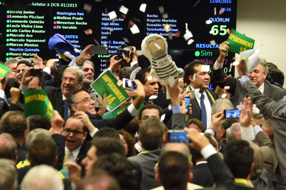 大公网4月13日讯 综合英国广播公司、路透社、新华社报道:巴西众议院特别委员会11日晚通过建议弹劾总统罗塞夫的报告,预料众议院最快17日表决,若有三分之二议员赞成,将展开弹劾程序,罗塞夫将暂停职务最多180天,等候参议院裁决,由副总统特默暂代总统职务。若参议院三分之二议员通过弹劾,罗塞夫便要下台,由副总统完成余下任期。