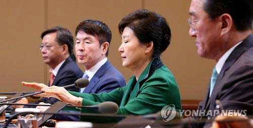 4月18日,在青瓦台,朴槿惠主持首席秘书会议(韩联社)