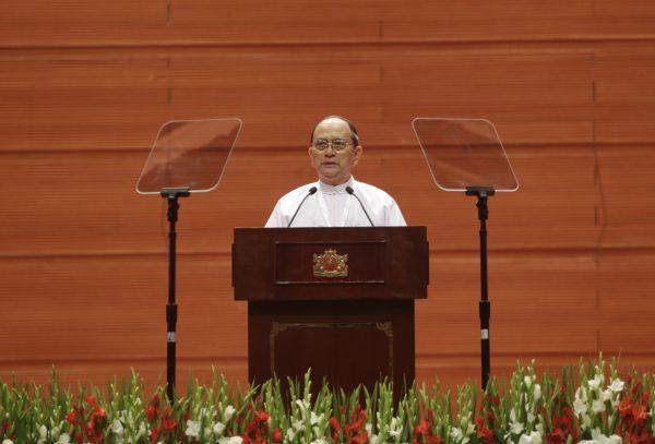1月12日,在缅甸内比都,缅甸总统吴登盛在联邦和平会议开幕式上讲话。 新华社发