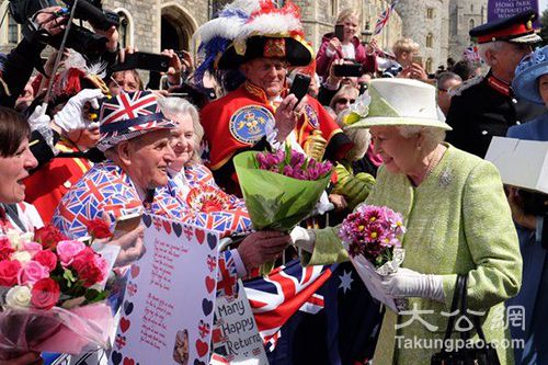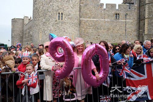大批民众和王室迷们纷纷涌进温莎小镇,庆祝这具有历史意义的一天。他们穿着节日盛装,身披英国国旗,许多人手中拿着整束鲜花、烤制的蛋糕、手工生日贺卡以及公仔玩具等作为送给女王的礼物。来自温莎临近兰利镇的居民拉维尔说:"女王在工作中投入的热情和精力激励着大家,她是我们的榜样。我们来参加她的生日庆典,就像自己家庭活动的一部分。"