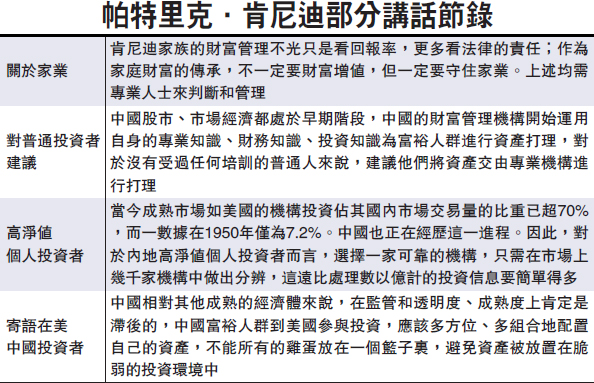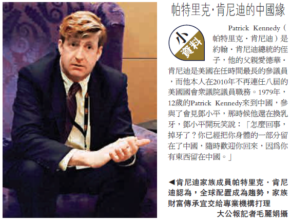 肯尼迪家族成员帕特里克·肯尼迪认为,全球配置成为趋势,家族财富传承宜交给专业机构打理 资料图