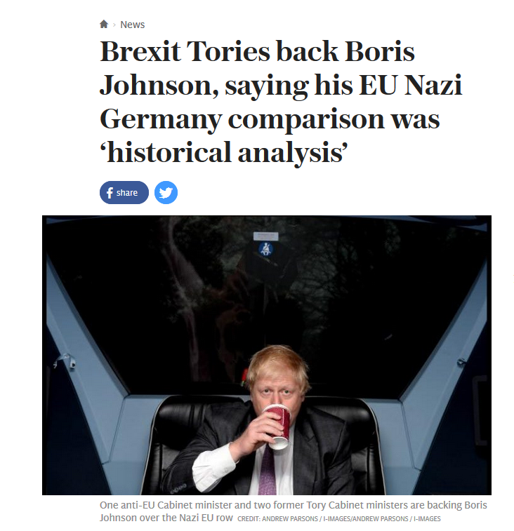 约翰逊接受星期日电讯报采访时将欧盟与纳粹德国对比
