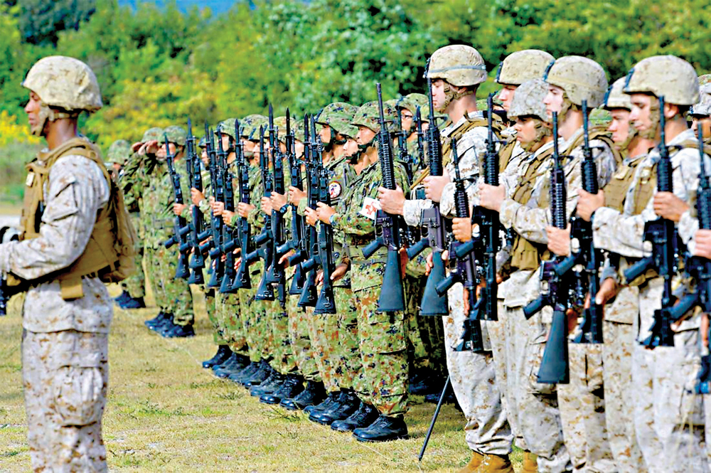 2013年,美海军陆战队和日本自卫队在冲绳进行联合军演/资料图