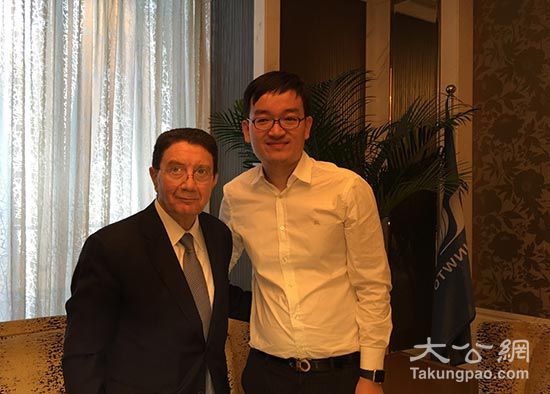 专访后,本报记者(右一)与联合国旅游组织秘书长瑞法依先生合影/记者朱烨摄