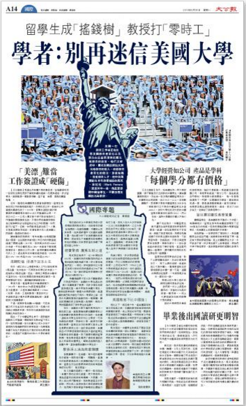 有数据显示,在美国,每三个外国学生中就有一个来自中国。“问题是,当过半的教授都是低收入的兼职的脑力打工者时,留学生付出的学费与得到的教育还能够成正比吗?”马克问道。