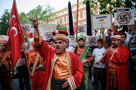 大公网6月4日讯 综合英国广播公司、半岛电台、《德国之声》报道:德国联邦议院2日以举手表决的方式通过亚美尼亚决议,将第一次世界大战期间发生的大批亚美尼亚人死亡事件定性为种族屠杀。亚美尼亚对德国议会的议案表示欢迎。但德国议会的表决结果随即引发土耳其政府的强烈不满。土耳其形容这项决议是“历史错误”,且“傲慢和欠缺尊重”,并召回驻德国大使以表达抗议。土耳其民族主义者在德国驻伊斯坦布尔大使馆前发起了示威游行。