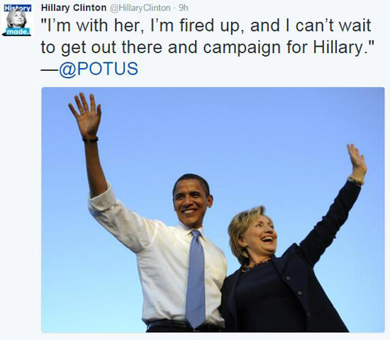 希拉里推特转发奥巴马宣言