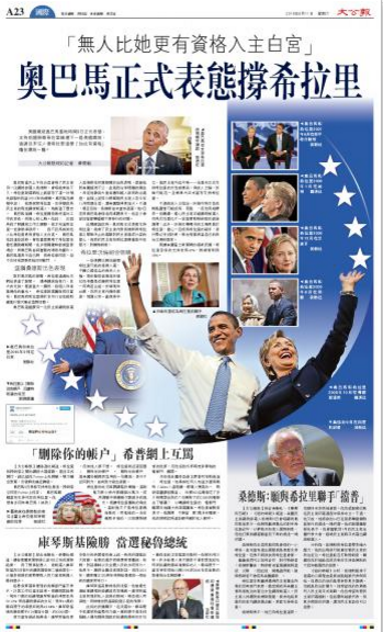 大公网6月11日讯(驻纽约记者黄晓敏)美国总统奥巴马当地时间9日正式表态,支持前国务卿希拉里竞选下一届美国总统,强调从来没人像希拉里这样“如此有资格”担任总统一职。