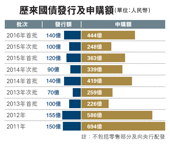 大公网6月30日讯(记者黄裕庆)英国脱欧引爆环球股汇债市场大幅震荡。市场避险情绪升温,触发资金流入避险资产。适逢今年首批由财政部发行的人民币国债,正值于公投后进行投标,最终录得444亿元(人民币,下同)申购额,创2012年后新高,规模亦为历来第三高,以140亿元发行额计算,相当于超额认购近2.17倍。分析指,面对其他政府国债被抢至负息,离岸国债收益率相当吸引,加上市场流动性充裕,以及点心债供应短缺,是今批国债受欢迎的主要原因。