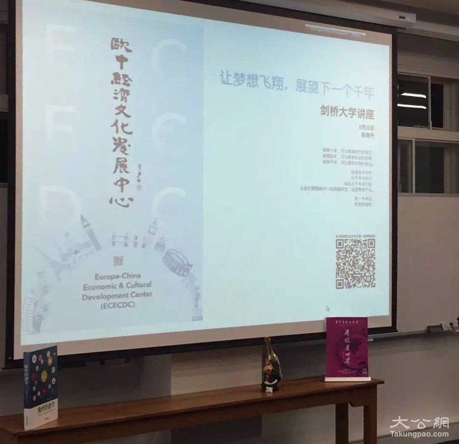 大公网6月30日讯(记者李威)英国剑桥大学6月26日举办了一场旨在促进中西方文化交流的讲座,由著名旅欧作家张晓丹主讲,剑桥博物馆馆长詹姆斯林、英国著名侨领、中英企业家代表等出席了讲座。