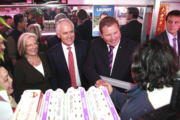 图:特恩布尔(中)1日到悉尼唐人街拉票\美联社