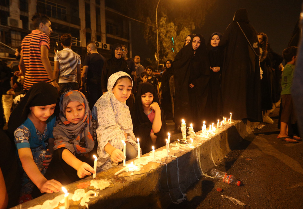 图:伊拉克民众4日在巴格达悼念死者\美联社