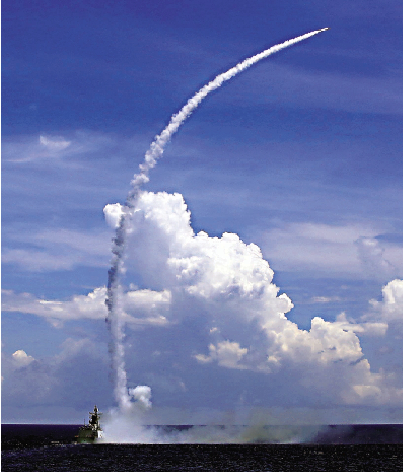图:中国海军三大舰队近日在南海西沙群岛附近海域举行对抗演习,图为导弹护卫舰发射防空导弹新华社