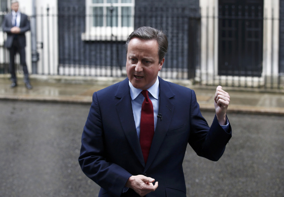 图:英国首相卡梅伦11日在伦敦唐宁街10号发表声明路透社