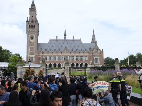 荷兰海牙仲裁法庭门外12日被大批媒体包围/美联社