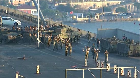 大公网7月16日讯 综合外媒报道,土耳其16日凌晨发生军事政变,目前发动叛乱的武装分子已经投降,叛乱失败。土耳其总统埃尔多安在伊斯坦布尔向支持者发表演说,称军方政变已经结束,军队无法掌控国家,必须由人民来决定谁统治国家。土耳其高级官员称,截至目前已有至少90人在政变冲突中丧生,逾千名民众受伤。