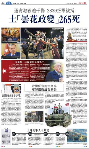 大公网7月17日讯 综合英国《卫报》、CNN、路透社报道:土耳其军人15日深夜爆发军事政变,在付出二百多人死亡、一千多人受伤的惨重代价之后,不到24小时即宣告流产,首都安卡拉与第一大城伊斯坦布尔逐渐恢复平静,至少2839名政变参与者被捕。
