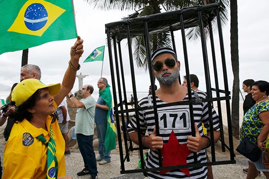 图:示威者7月31日要求囚禁停职总统罗塞夫\路透社