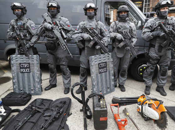 首批已接受专门训练对付恐怖分子的警察共有600人。出勤时,三人为一组,各人均配备卡宾步枪、曲尺手枪、霰弹枪及爆破工具。他们在伦敦各个地标巡逻,为了保护身份及方便行动,他们都会戴上面罩。