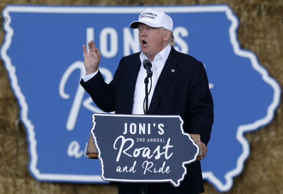 图:美国共和党总统候选人特朗普27日在艾奥瓦州演说美联社