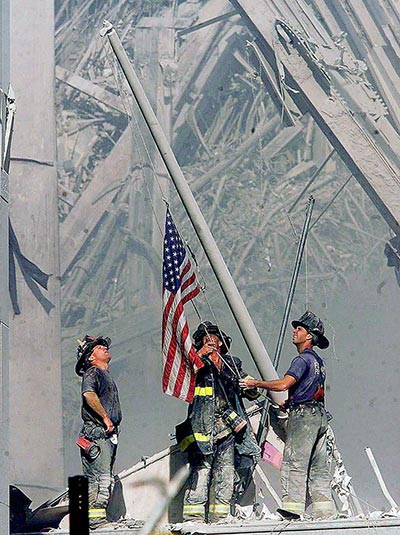 据美国《华盛顿邮报》报道,“9.11”后,3名纽约消防队员在倒塌的世贸大楼废墟,举起一面美国国旗,成为“9.11”标志之一,知名度与二战时美国士兵在硫磺岛竖起国旗的照片相当。不过,这面见证历史的国旗后来失踪,直至2014年由一名海军老兵交到华盛顿州一家消防局。专家花两年时间鉴定证实其真实性,目前该旗帜已回归纽约“9.11”国家纪念博物馆。
