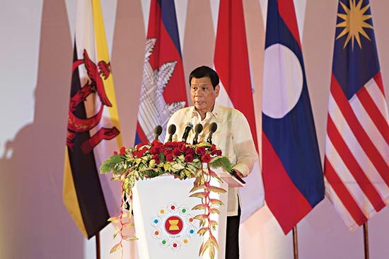 图:菲总统杜特尔特8日出席东盟峰会闭幕式/法新社