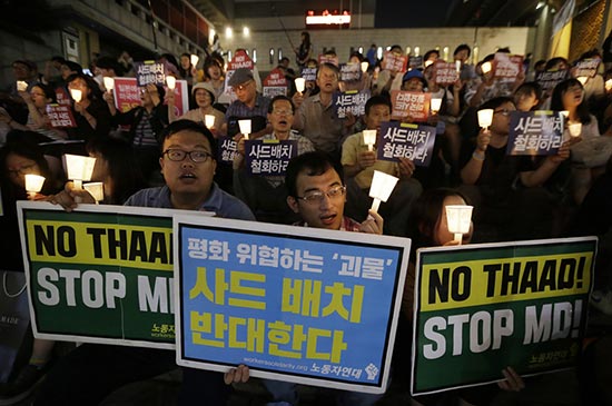 韩国在7月宣布引入的美国“萨德”系统,原定部署于庆尚北道星州郡的星州炮台,但星州郡民众担心会危及个人健康并毁掉当地农业经济,不惜以血书方式誓死抗争。与地方政府协商后,韩国国防部于8月29日宣布了备选方案,星州高尔夫球场、厌俗山和喜鹊山作为炮台的后备。
