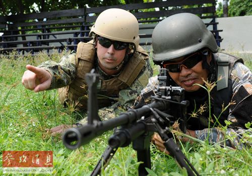 资料图:美菲年度联合军演上,美方人员在指导菲律宾士兵实弹射击。(法新社)